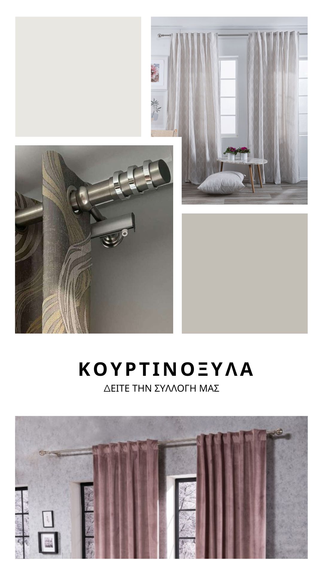 Και για την απόλυτα ολοκληρωμένη εμφάνιση, θα βρεις και ποικιλία σε αξεσουάρ κουρτινόξυλου, που προσθέτουν την τελευταία πινελιά σε κάθε εγκατάσταση.