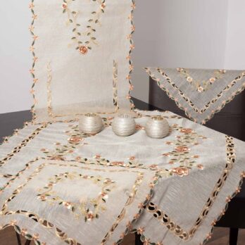 Χειροποίητο πετσετάκι σε λινό πανί με δαντέλα Βρυξελλών