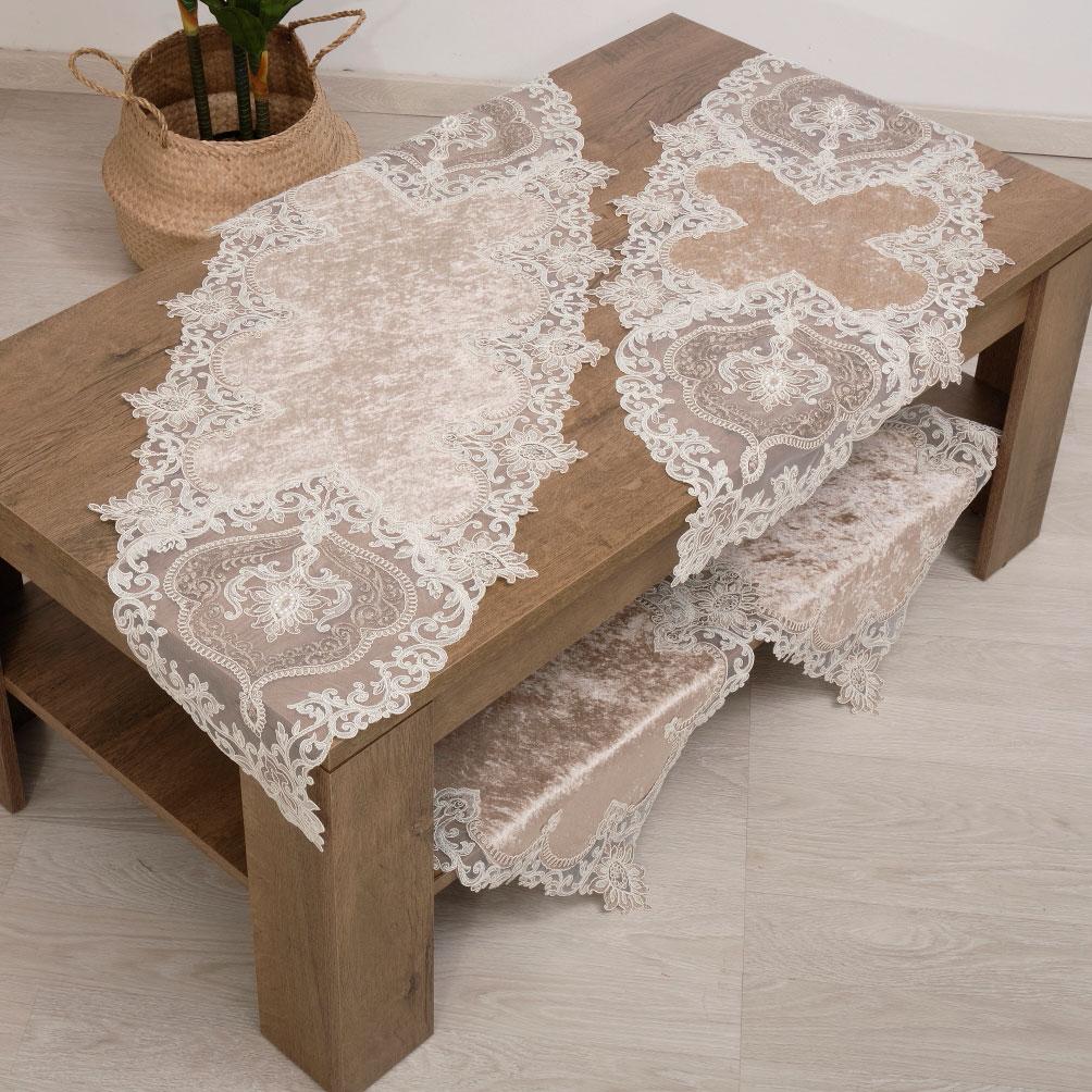 Σετ Τραβέρσα 35x100 & Πετσετάκια 35x35 Βελούδο με Κέντημα Σχέδιο 2130
