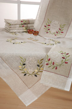 Τραπεζομάντηλο με κέντημα κόκκινη ελιά και πετσέτες φαγητού