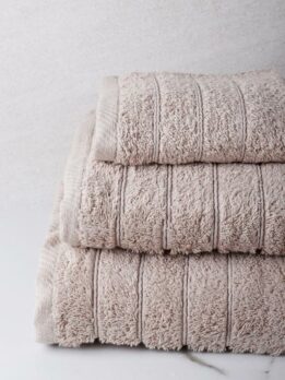 Η κορυφαία πετσέτα που παρουσιάζουμε με βάρος 600γρ/τμ εξασφαλίζει απαλότητα και απορροφητικότητα. Κατασκευασμένη από 100% καθαρό μακρόινο βαμβάκι, διαθέσιμη σε 3 μεγέθη και πολλά ουδέτερα και ζωντανά χρώματα με ριγέ ομόχρωμη μπορντούρα. Συμπεριφέρεται άριστα στα πλυσίματα και παραμένει μαλακή με την πάροδο του χρόνου. Μια πολυτελής επιλογή για τα χέρια, το πρόσωπο και το σώμα! Επιλέξτε όλο το σετ και δώστε στο μπάνιο σας ομοιόμορφη διακόσμηση.