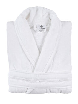 Μπουρνούζι βελουτέ από 100% βαμβάκι. Διαθέτει γιακά, δυο τσέπες και ζώνη στη μέση αγκαλιάζοντας το σώμα μετά το μπάνιο. Ένα ιδιαίτερα απαλό μπουρνούζι, απορροφητικό και ανθεκτικό στα πλυσίματα, υπόσχεται προστασία, ζεστασιά και ποιότητα. Η διαχρονική λευκή απόχρωση το κάνει κατάλληλο για άντρες και γυναίκες. Ιδανική επιλογή για τον ξενοδοχειακό σας εξοπλισμό, θα ενθουσιάσει τους επισκέπτες σας.