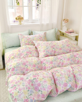Ένα υπέρκομψο σετ υπέρδιπλων σεντονιών, που θα φέρει την άνοιξη στο χώρο σας. Ζωηρά λουλούδια στο πανωσέντονο και διακριτικό καρό με μικρό λουλουδάκι στο κατωσέντονο σε παστελ απόχρωση της μέντας. Είναι κατασκευασμένα από 100% βαμβακοσατέν 200 κλωστών με νήματα πενιέ, που τα καθιστά εξαιρετικά μαλακά για να σας χαρίσουν τον τέλειο ύπνο, αλλά και ανθεκτικά και εύκολα στο σιδέρωμα. Η ποιότητα και το μοναδικό τους σχέδιο τους θα δώσουν στην κρεβατοκάμαρά σας ένα ξεχωριστό στυλ. Στο σετ περιλαμβάνονται και δύο μαξιλαροθήκες τύπου oxford διπλής όψης. *Το σχέδιο στις μαξιλαροθήκες ενδέχεται να διαφέρει από αυτό της φωτογραφίας, καθώς η εταιρεία παράγει μαξιλαροθήκες από όλο το σχέδιο του υφάσματος και τις συσκευάζει με τυχαία σειρά. ** Συνδυάστε τα με τα υπόλοιπα είδη του ιδίου σετ για ένα ολοκληρωμένο αποτέλεσμα. ΦΡΟΝΤΙΔΑ/ ΟΔΗΓΙΕΣ ΠΛΥΣΗΣ Πλύσιμο σε μέγιστη θερμοκρασία νερού 40C. Απαγορεύεται η χρήση λευκαντικών ουσιών ή χλωρίνης.